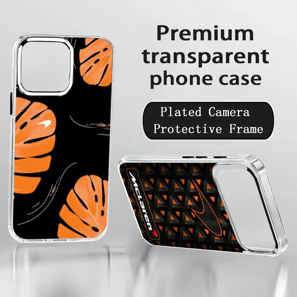 Coque de téléphone SuperCar MS-McLarenES pour iPhone 17 Air 16 15 14 13 12 11 Pro Max Plus avec bouton chromé et anneau de caméra transparent