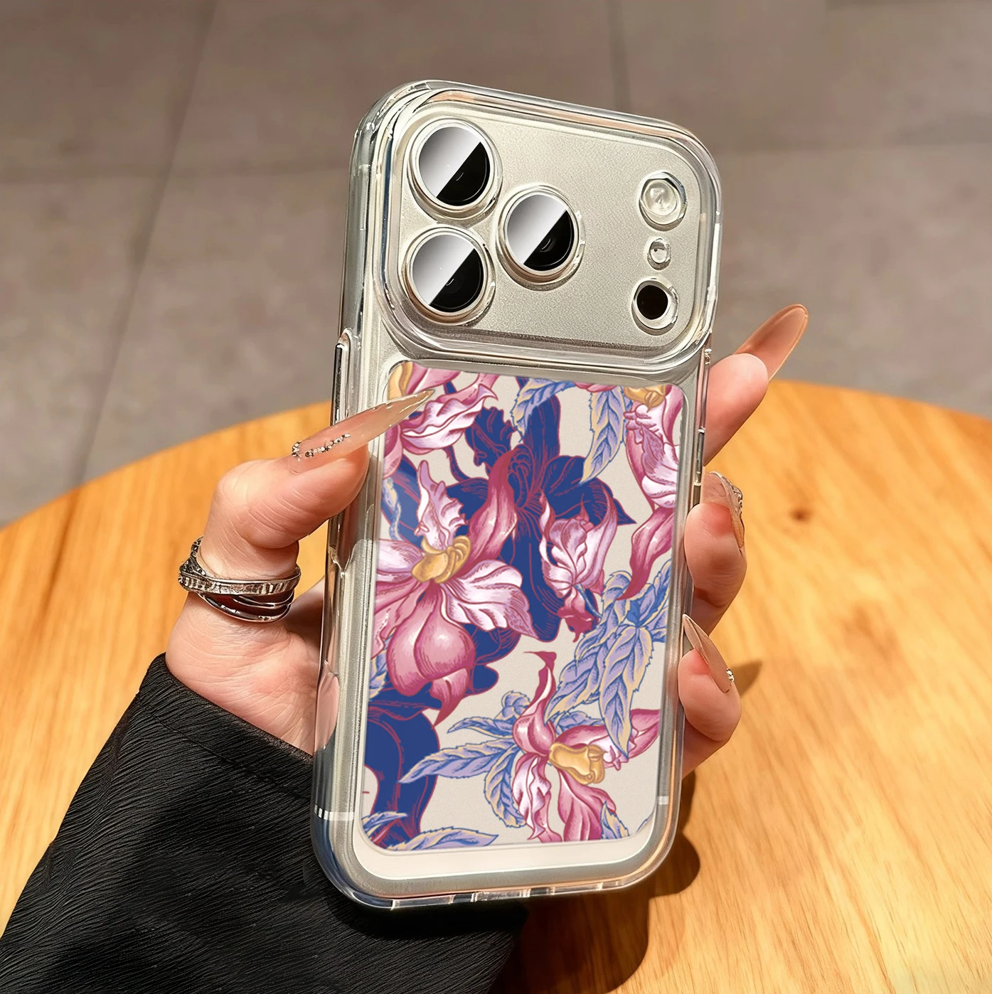 Coque à fleurs violettes pour iPhone 16 15 17 14 Pro Max 13 12 11 XS XR 16e 17, protection d'appareil photo transparente, antichoc, protection d'objectif