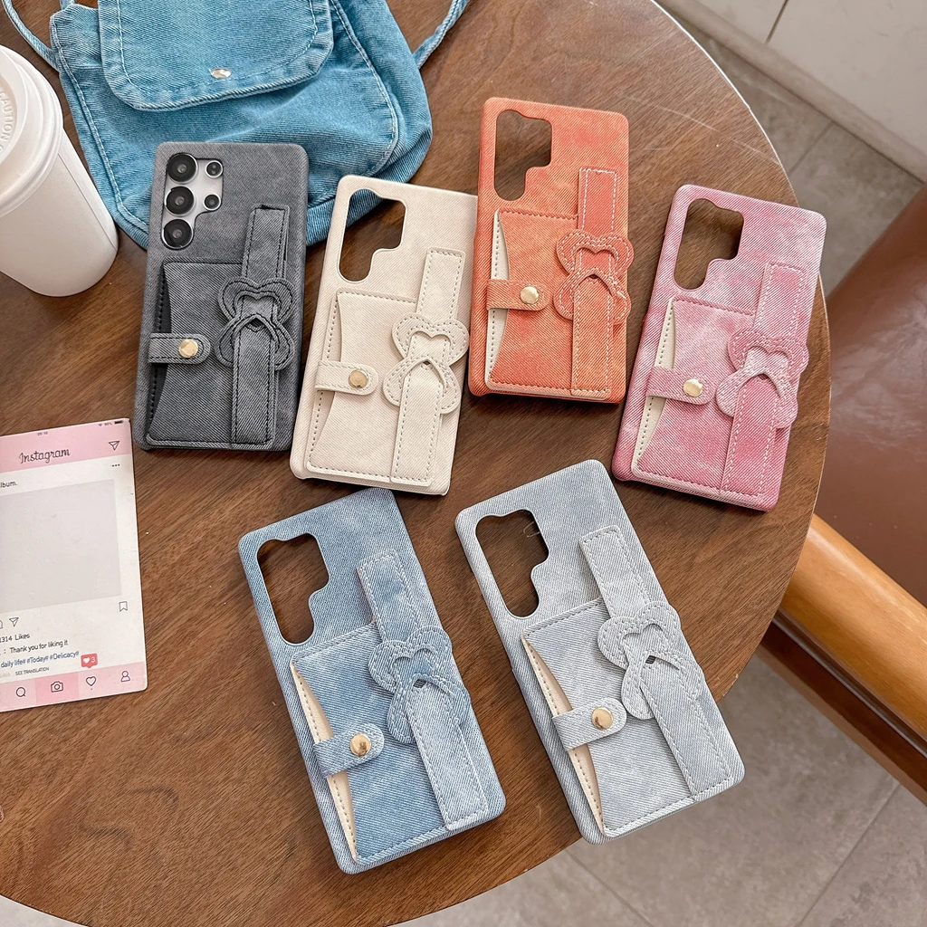 Porte-carte multifonctionnel, bracelet d'amour avec support, Texture Denim, housse de téléphone pour Samsung Galaxy S22 S23 S24 S25 Ultra