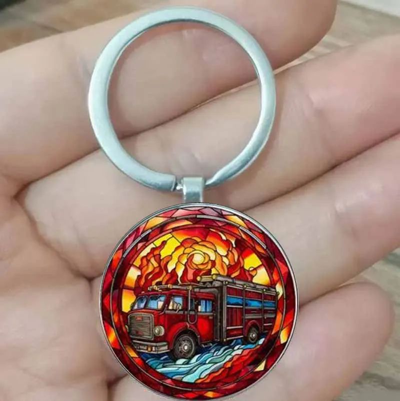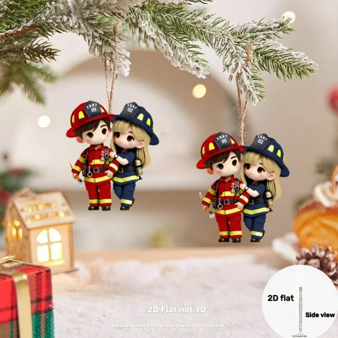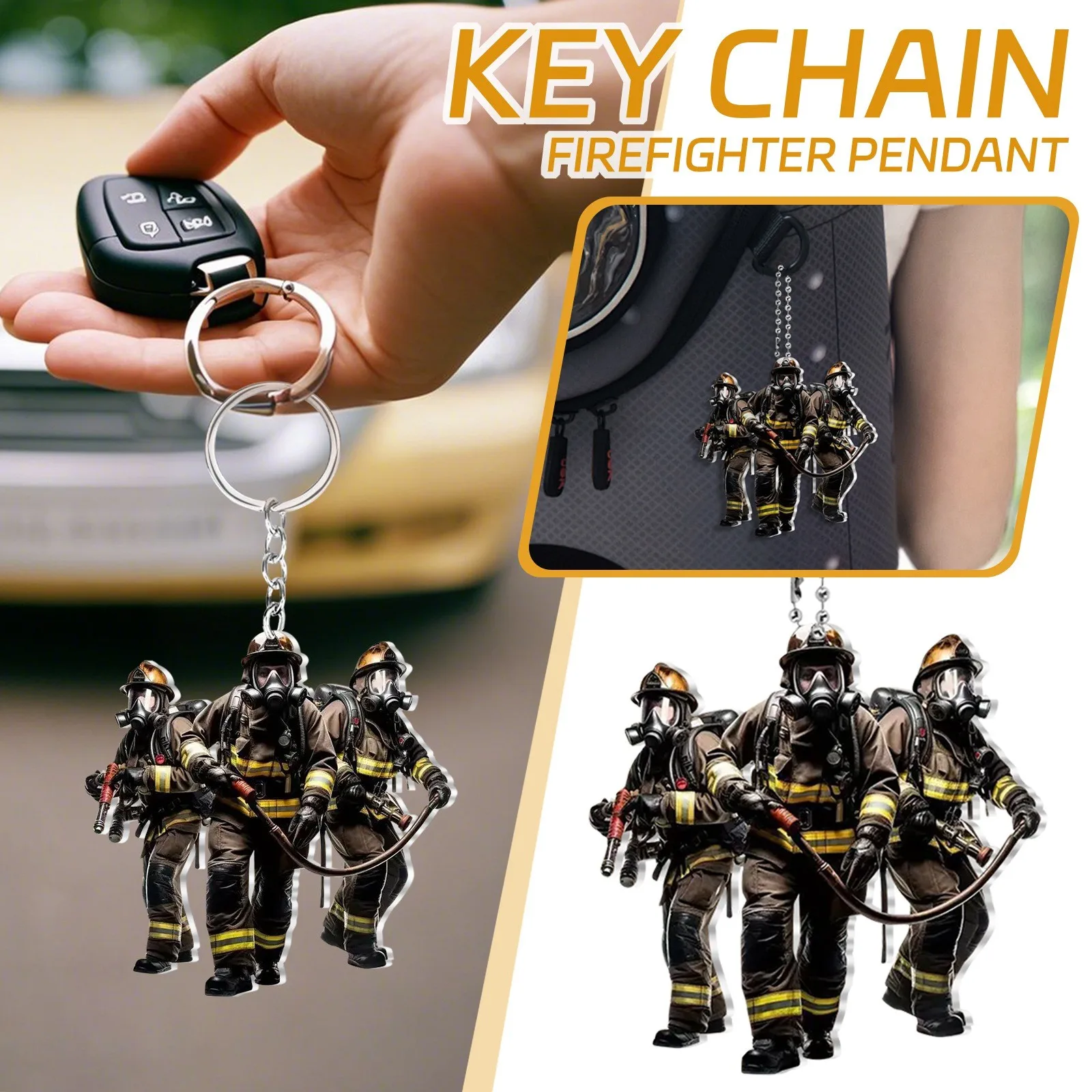 Pendentif plat en acrylique 2D pompier, pendentif porte-clés pompier courageux, pour la décoration de la maison, décoration suspendue personnalisée pour voiture