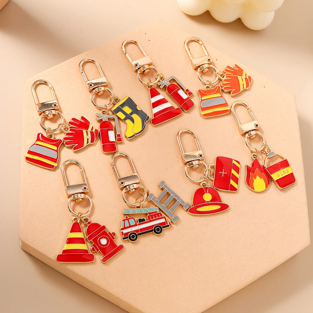 Porte-clés de pompier en métal, breloque décorative, pendentif de voiture polyvalent, cadeau de pompier suspendu