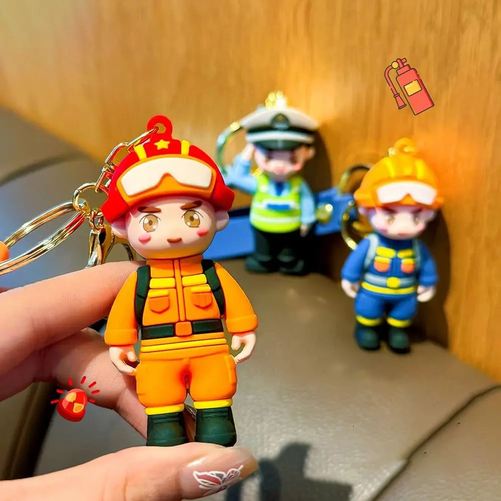 Porte-clés pompier Portable mignon, mode créative poupée de Police pendentif porte-clés dessin animé tridimensionnel voiture porte-clés étudiant