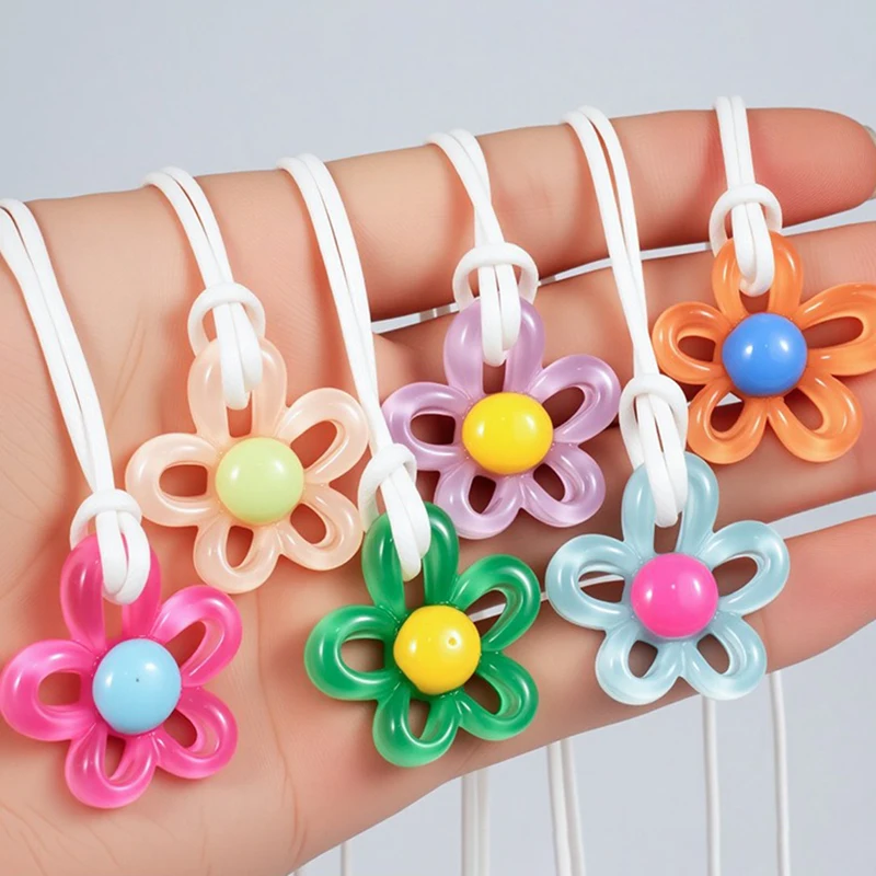 Pendentif fleur en acrylique coloré, collier ligne de cire, mode cou, chaîne faite à la main, breloque, pendule pour femmes, bijoux cadeau Y2K