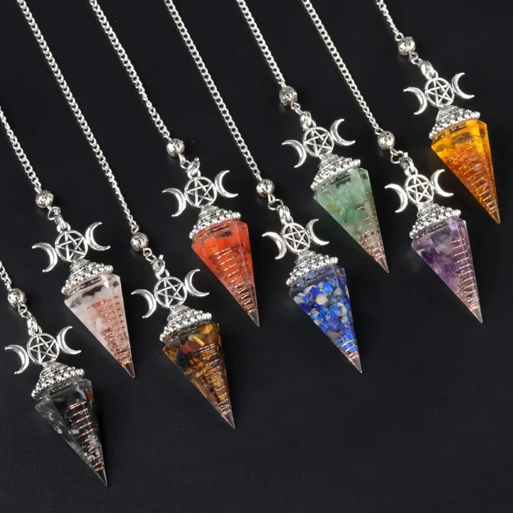 Pendule en pierre naturelle et cristal, trois phases, lune, cône Hexagonal, améthystes, breloques pour la fabrication de bijoux, accessoires de collier à faire soi-même