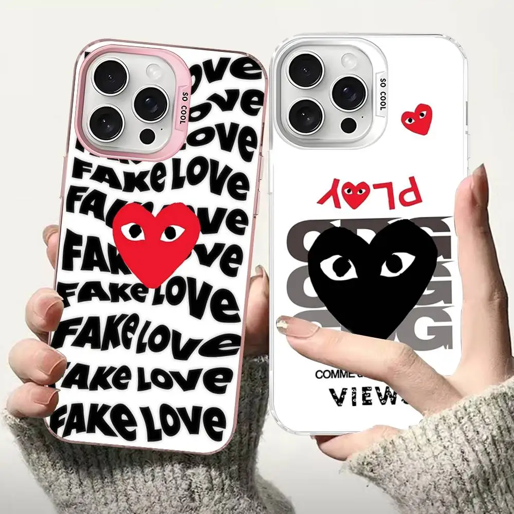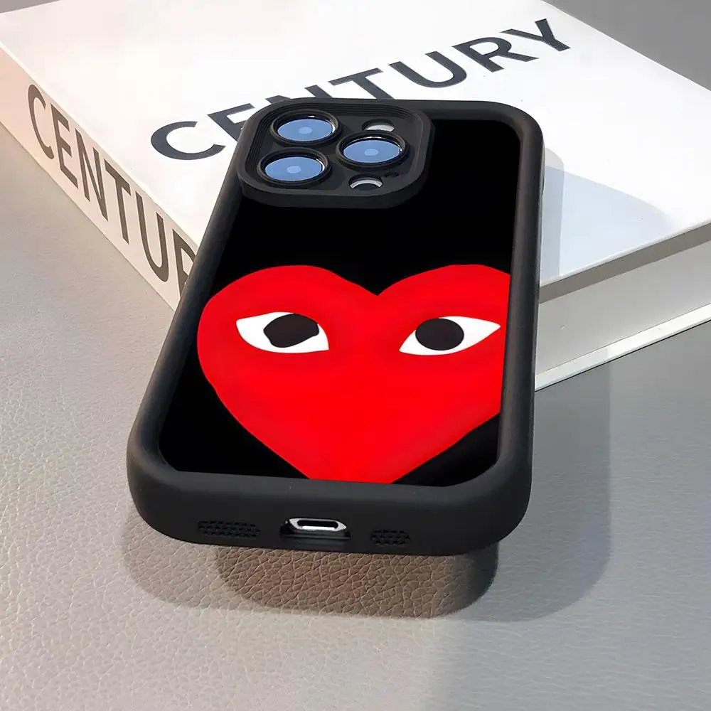 Coque de téléphone de luxe en silicone dépoli couleur unie simple motif cœur rouge C-CDG Love pour iPhone 17 16 13 12 15 14 Pro Max Plus et tous les modèles