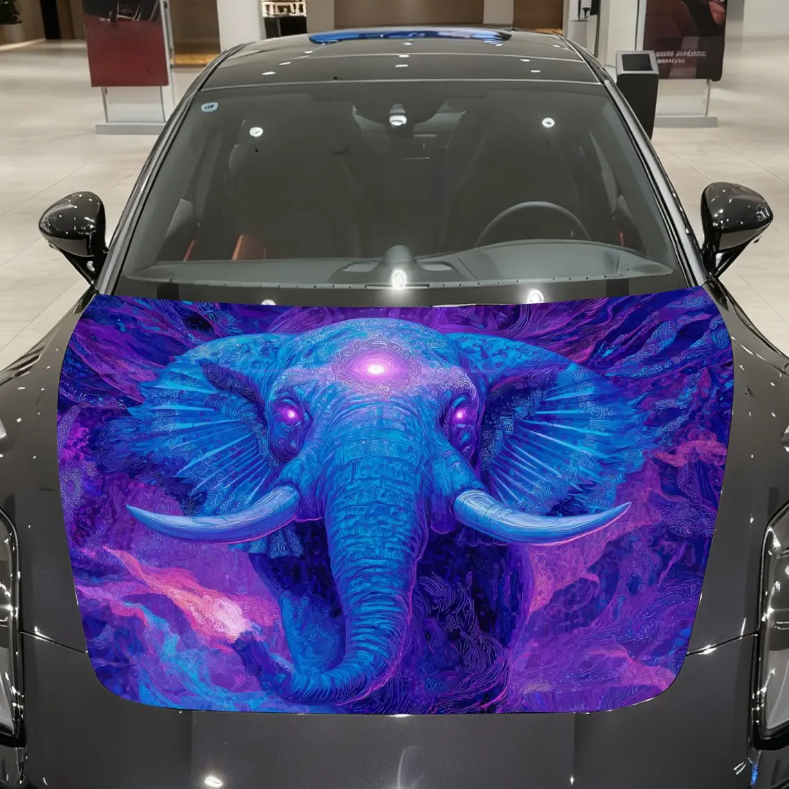 Autocollant de capot de voiture en forme d'éléphant violet, bâton auto-étanche en PVC, accessoires extérieurs automobiles frappants, décoration, cadeau de protection pour amoureux de voiture