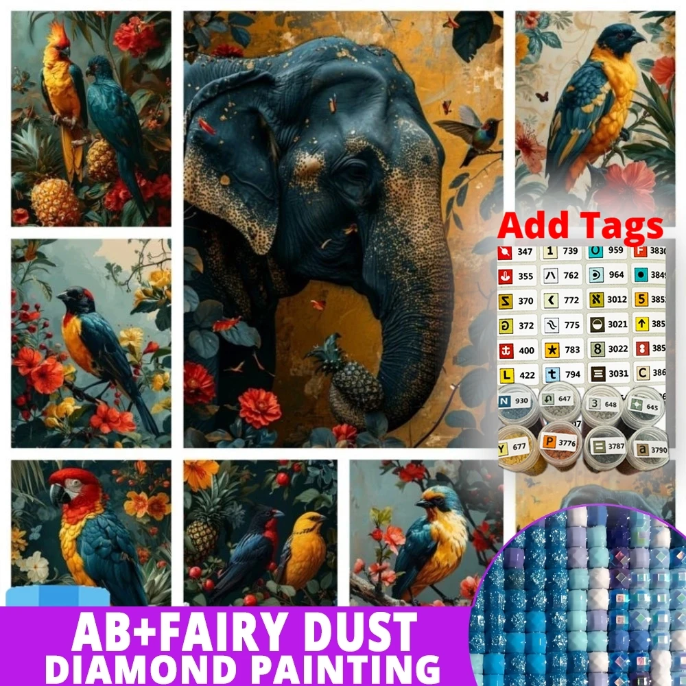 Avec symbole autocollant fée poussière AB plein diamant mosaïque nouveau bricolage animaux fleurs perroquet éléphant 5d bricolage diamant peinture broderie