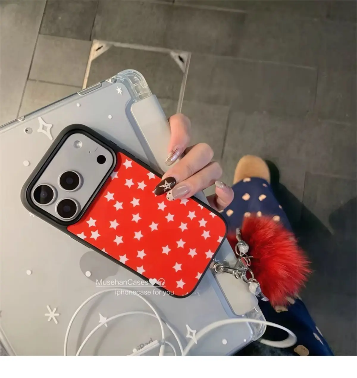 Ins bleu étoile rouge pomme dessin animé créatif mignon coque de téléphone pour iPhone 17 AIR 16 15 14 13 12 11 Pro Max Y2K frais polyvalent couverture