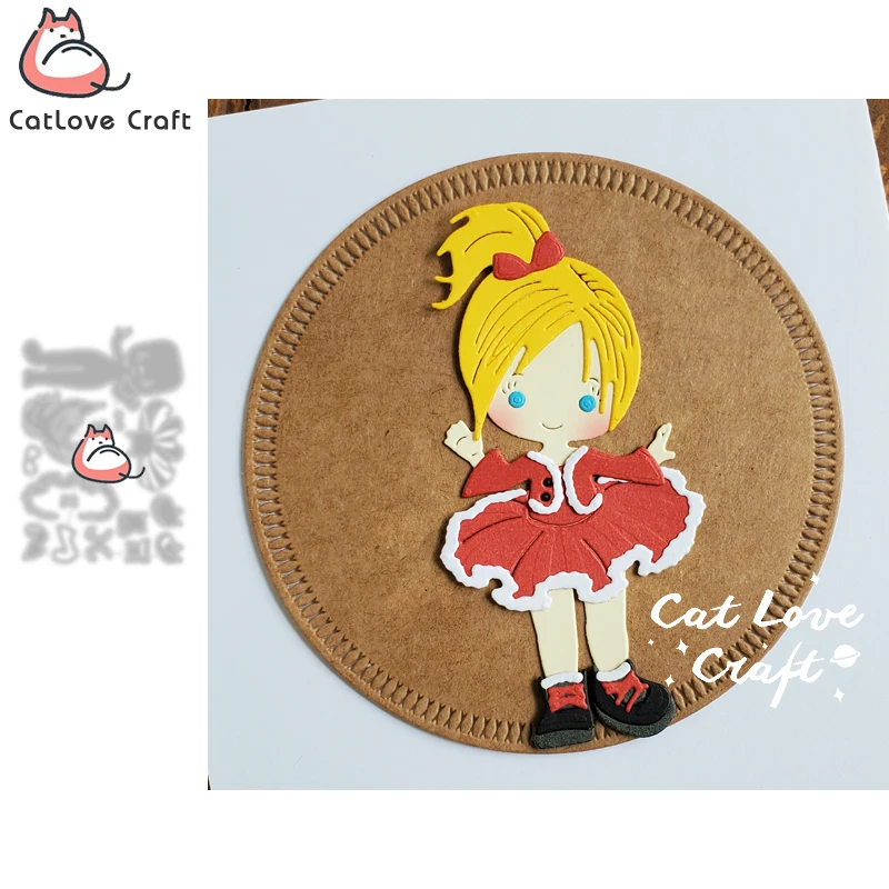 Catlove – matrices de découpe en métal, Costume d'hiver pour fille, pochoir de Scrapbooking, fabrication de cartes, bricolage, gaufrage artisanal, nouvelles matrices pour 2021