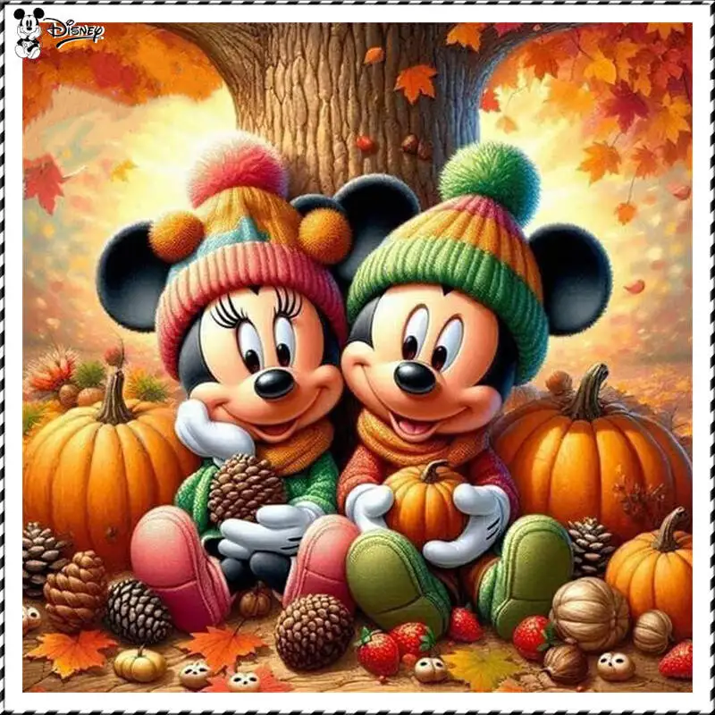 Disney bricolage diamant peinture Mickey Mouse & minnie toile citrouille pin feuilles tombées automne paysage Art peintures