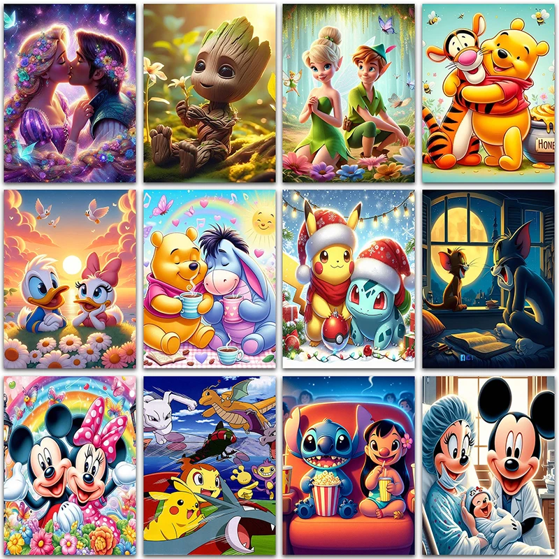 Disney Mickey Mouse diamant peinture Pikachu Groot Minions congelés décor à la maison plein carré et rond mosaïque broderie point de croix 5D