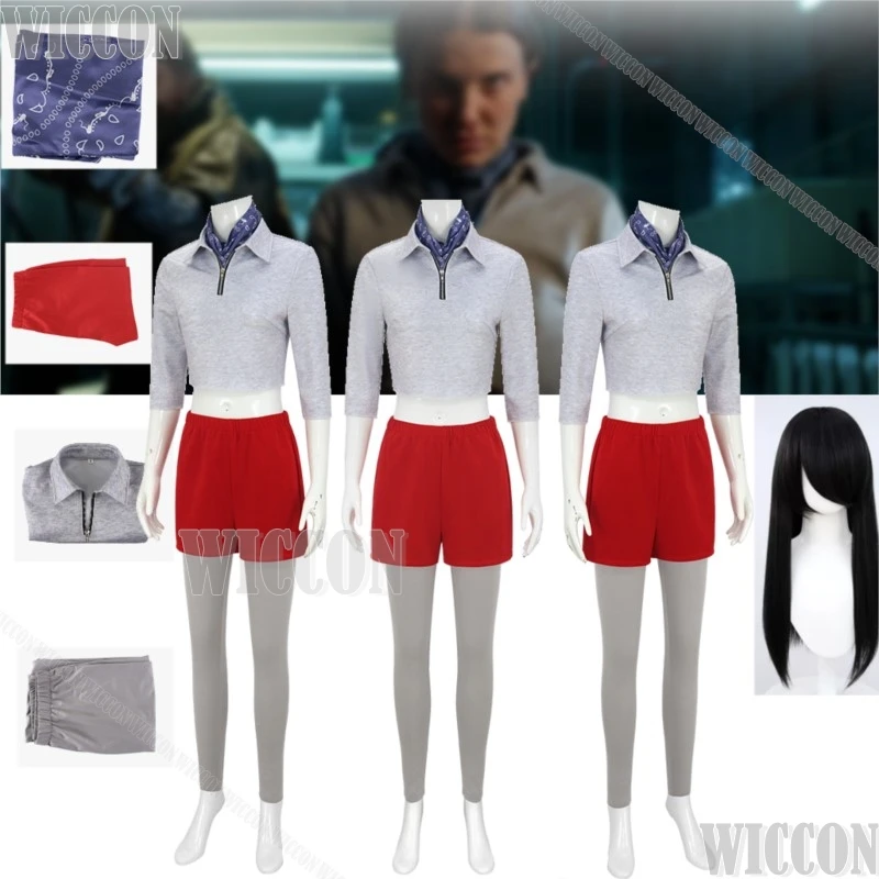 Onze petite fille TV Stange Cosplay Costume choses femme robe perruque vêtements haut gris rouge Mini jupe Halloween Cos fête jeu de rôle