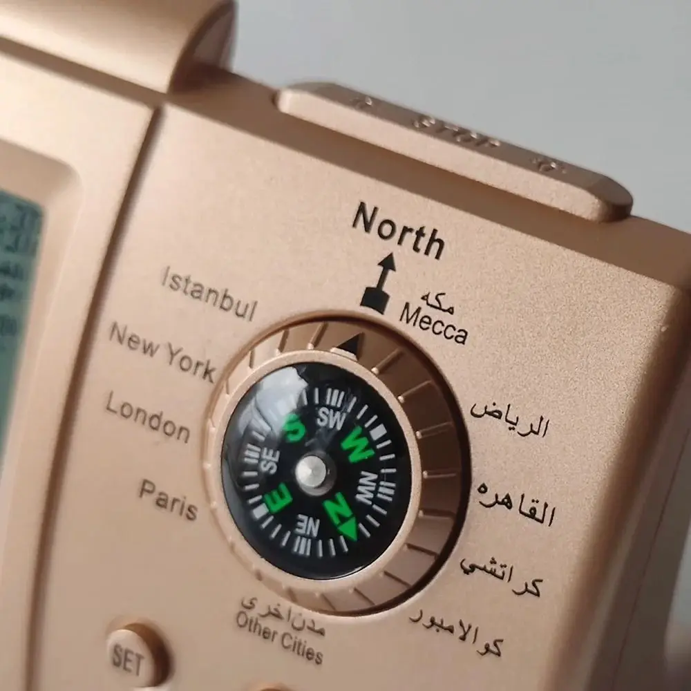 Horloge de Table musulmane polyvalente, réglage facile, calendrier Hijir, horloge musulmane, affichage de la température avec Direction Qiblah