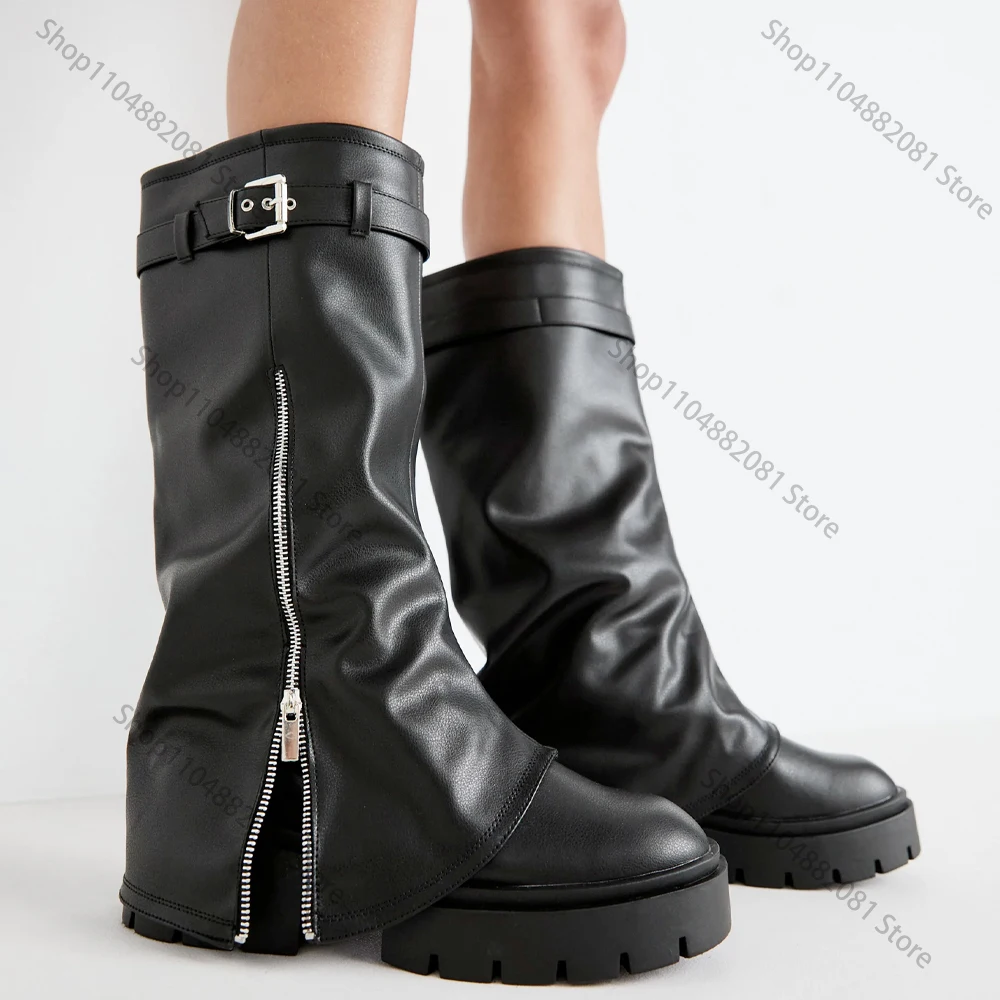 Hiver femmes Biker bottes mode ceinture boucle dames élégant plate-forme longue tuyau chaussons décontracté femmes genou haut chaussons