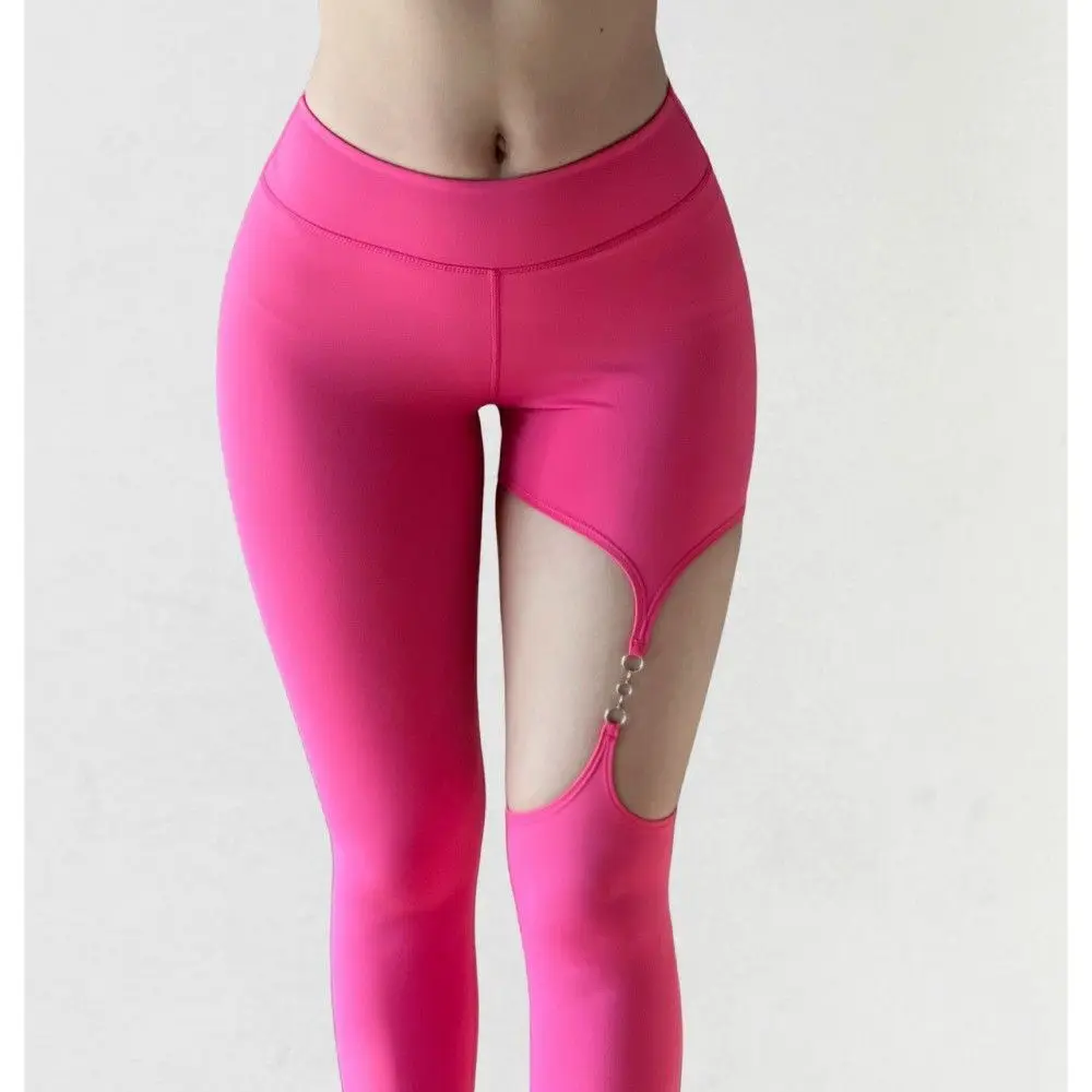 GUWU-Ensemble deux pièces yoga fitness pour femme, haut court et pantalon à boutons découpés, legging imbibé, survêtement décontracté