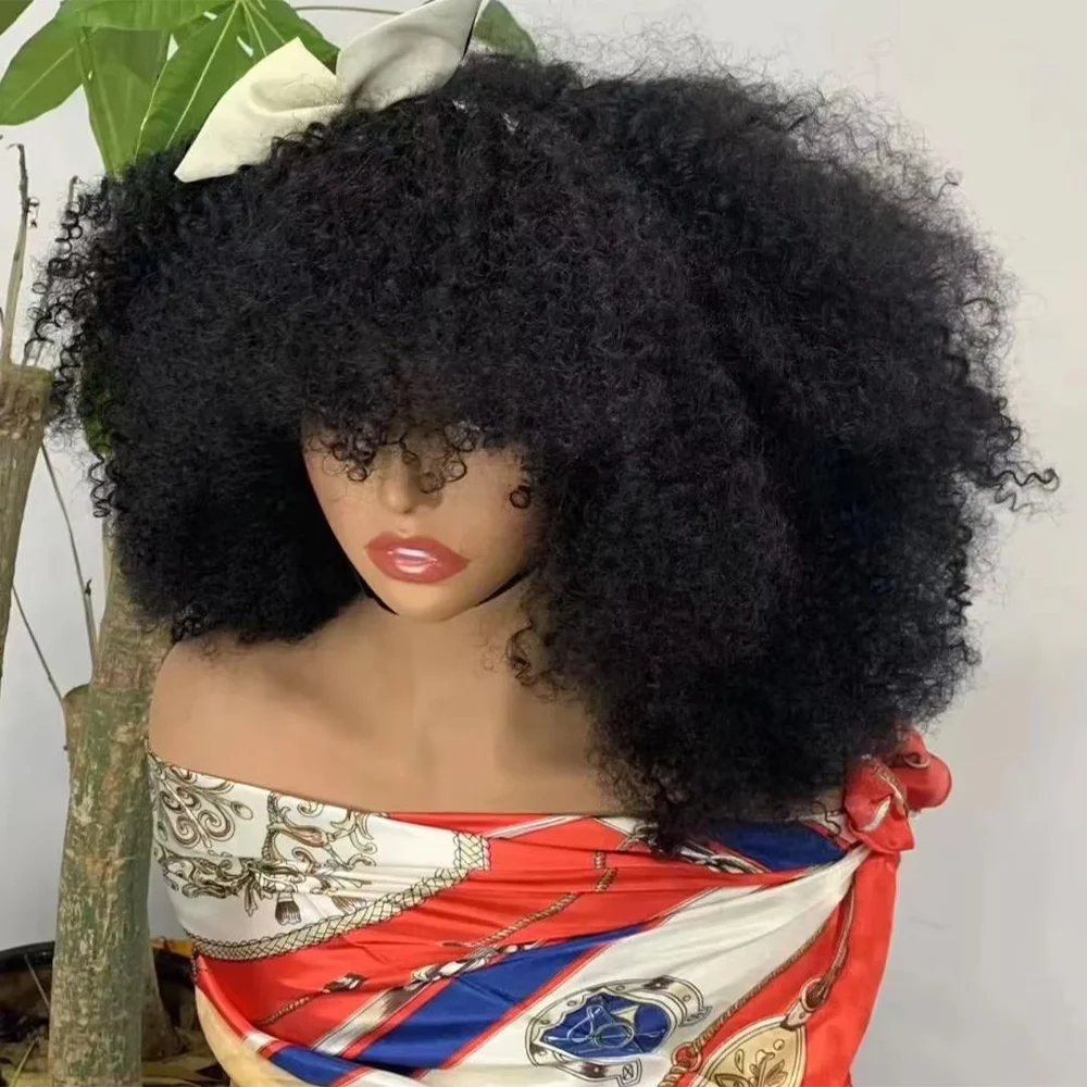 WHIMSICAL W-Perruque Synthétique Afro Crépue Bouclée avec Frange, Cheveux Courts et Moelleux, Cosplay Naturel pour Femme Noire