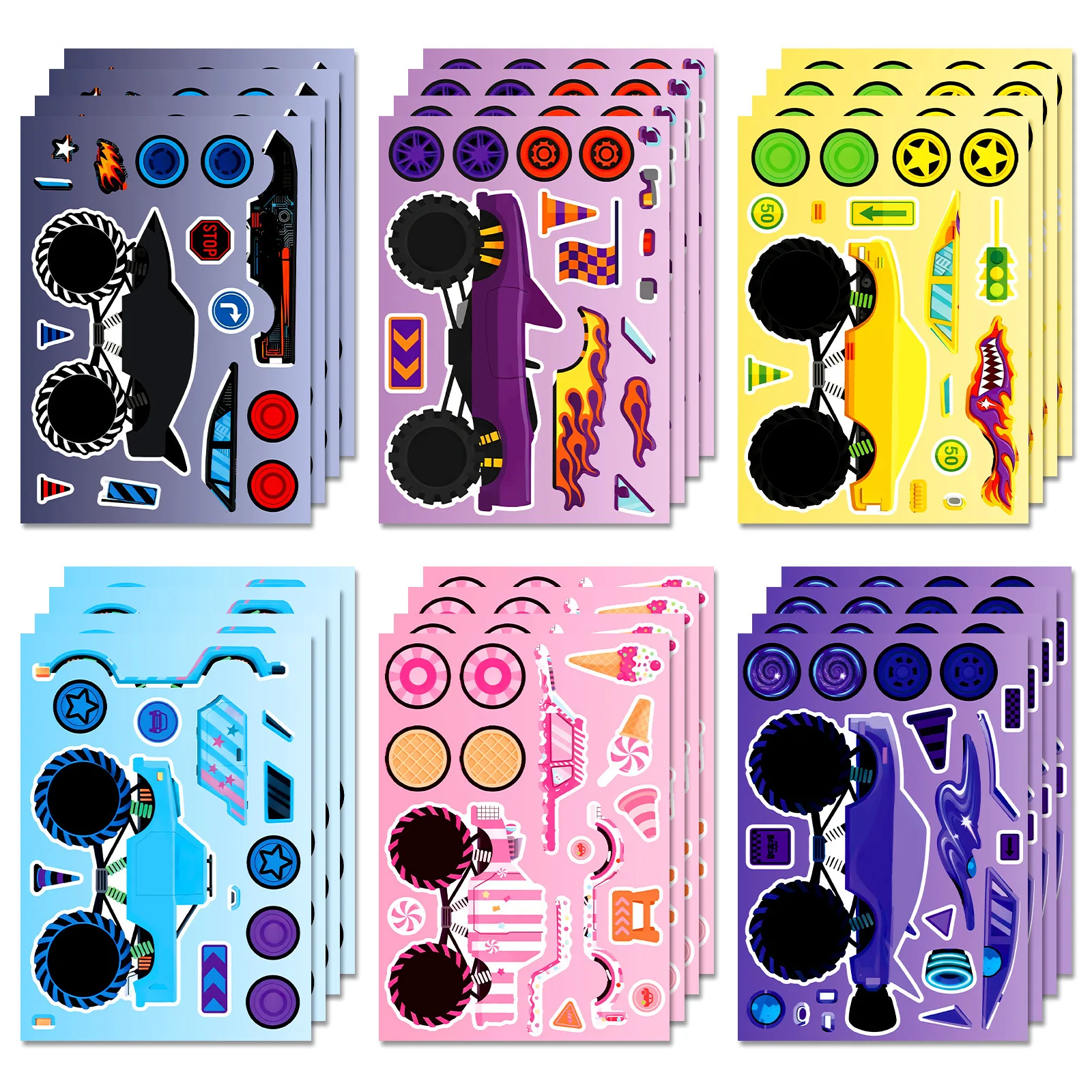 Autocollants de Puzzle pour camion à gros pieds, 6/12 feuilles, pour faire un visage, jeu d'éducation et d'intelligence précoce pour enfants, autocollants pour bagages et téléphone, DIY bricolage