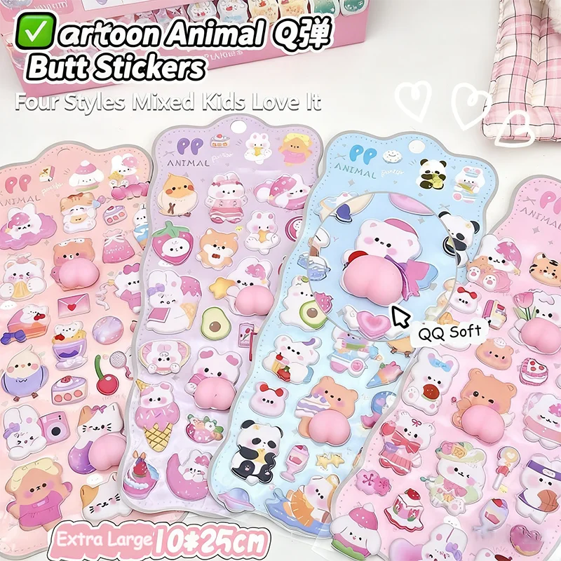 1/2/4 pièces décoration de fête autocollants bricolage 3D mignon Animal pet pêche soulagement du Stress pincement autocollants lapin ours soulagement téléphone autocollants
