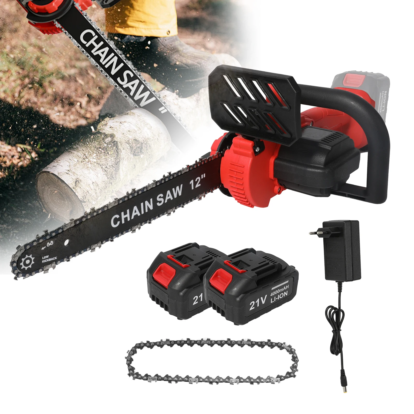 Mali Láncfűrész Akkumulátor 12 hüvelyk, Hordozható Láncfűrész, 2 Ketrecek, Hordozható Drótnélküli Láncfűrész számára Nyírás Kertészeti Fa