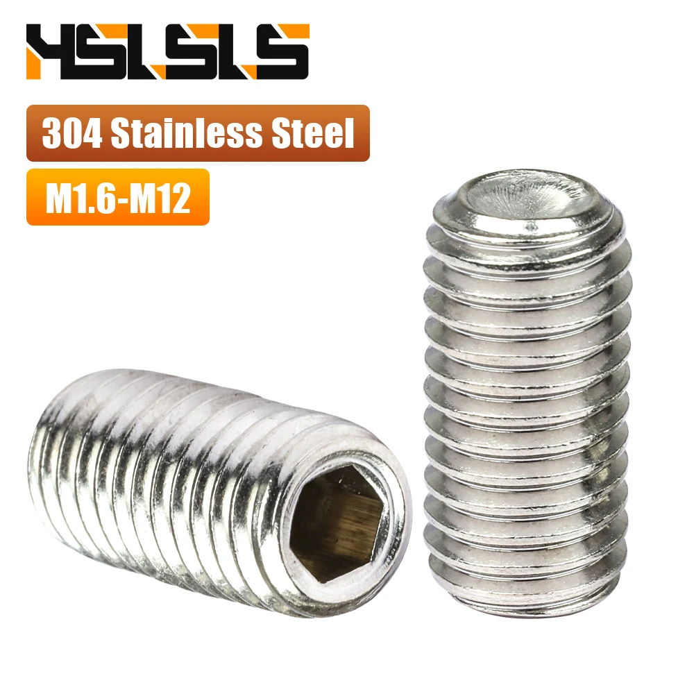 Hatszög aljzat beállítása csavaros Átvágás Ceruzahegy 304 Rozsdaálló Acél M1.6 M2 M3 M4 M5 M6 M8 M10 Fejetlen Előbányász csavaros cup-tip beállítása csavarok DIN916