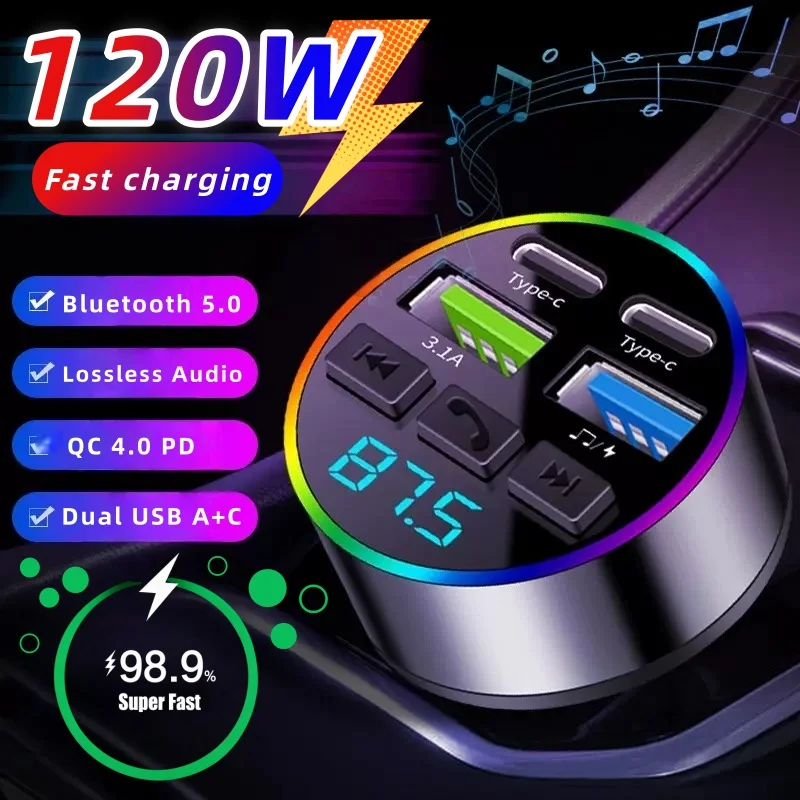 120W Kettős szám USB A+C gyors autó töltő Bluetooth Csődtömeggondnok vel lossless Hang MP3 Játékos QC 4.0 Palládium smare Adapter számára Az egész telefonok autók