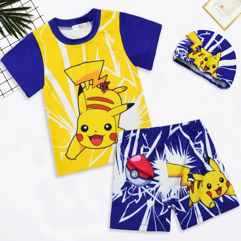 Óra Készlethalmozás Új gyerekeknek swimwear számára fiúk aranyos Gúnyrajz pikachu part Fürdőtrikó 3-piece beállítása kawaii Úszás 100-140cm