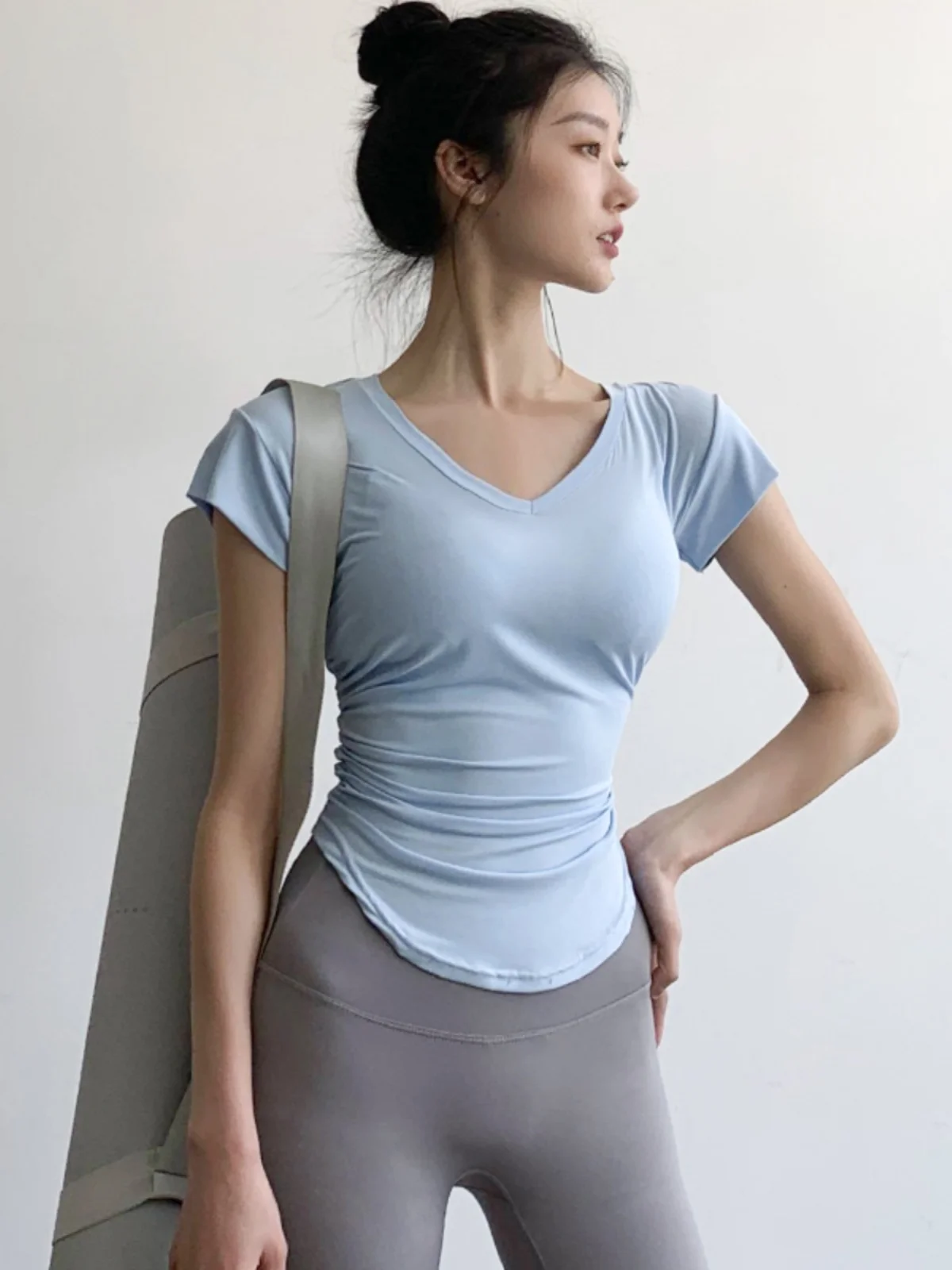 Női Födémgerenda Gyér Hely sve fitn Edzés felső qui Aszik Jóga sportswear Feszes illeszkedő u-ape hemline Lélegezhető t-irt