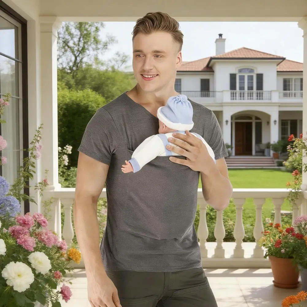 Férfiak Baba Fuvarozó Ing Gyapot Bekever vcc nyakú Porhanyós Ingujj Apu T-idom Baba Állóképes Póló számára Kényelmes Atyafi Baba érdekel