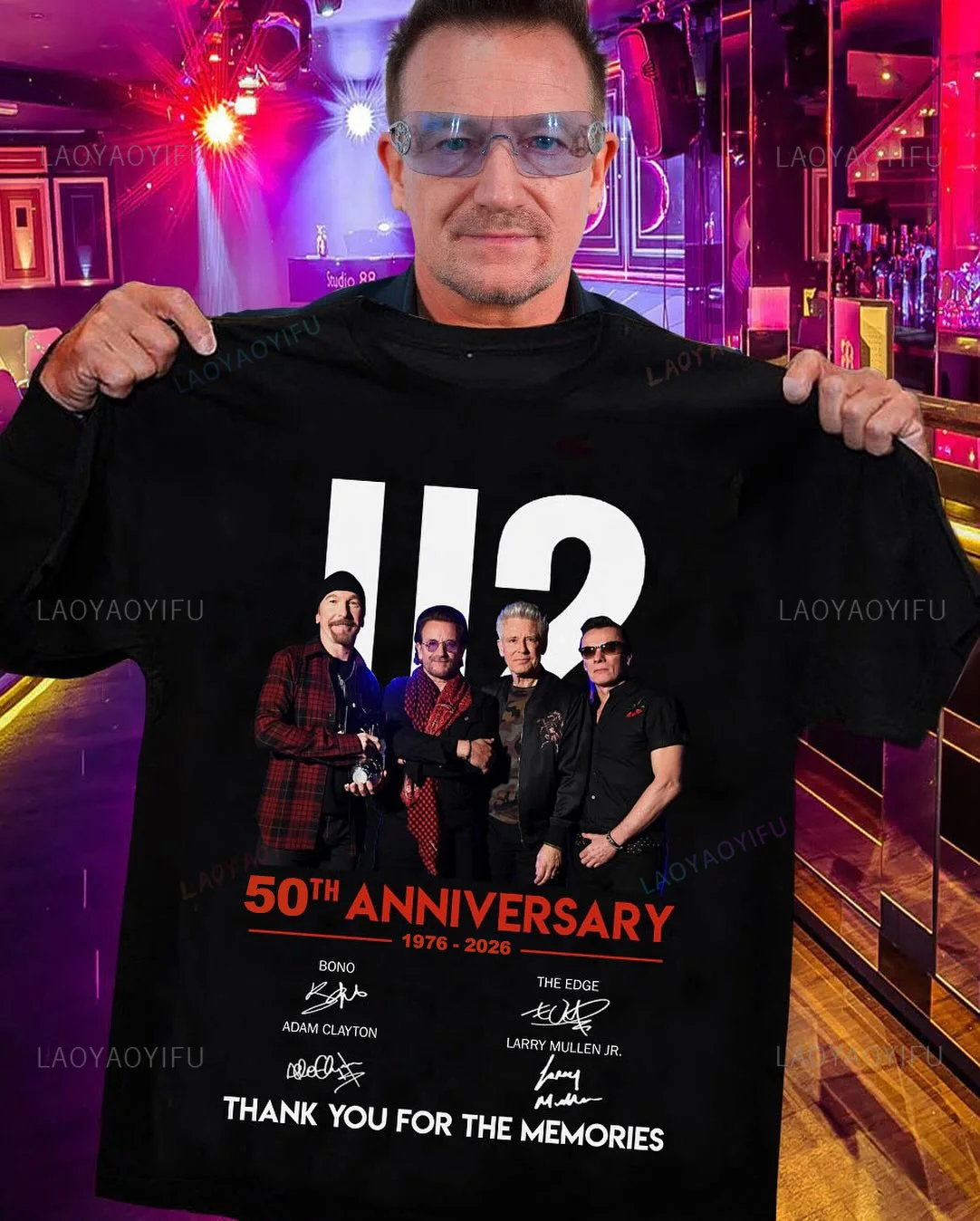 U2 Abroncs 50 Évforduló Grafikus T-idom Uniszex 1976-2026 évjárat Fontolóra vesz Hűbér signatures Póló Alkalmi utc stílusú Muzsika Ruházat