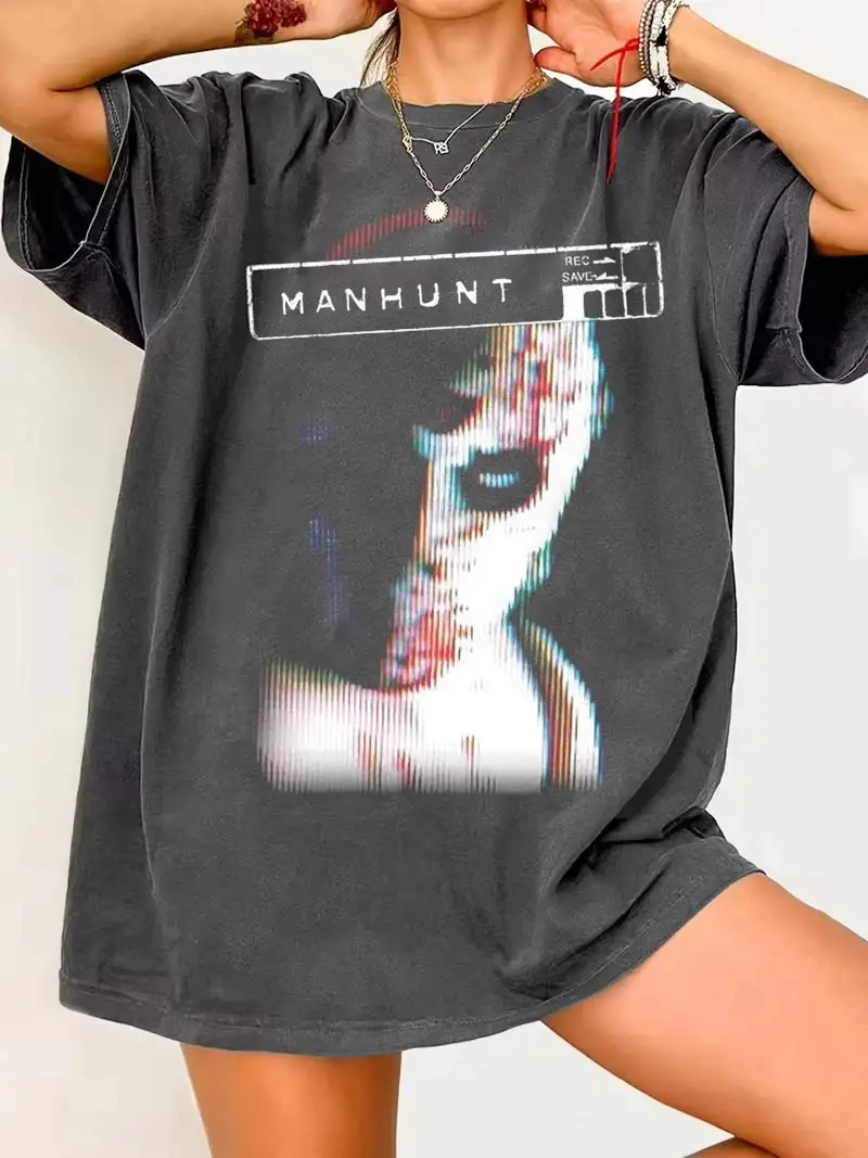 Nők évjárat Emberhajsza PS2 Borzadály Csonka Ingó- Póló T-idom férfiak Irdatlan Gyapot Alkalmi harajuku Födémgerenda Porhanyós Ingujj streetwear felső