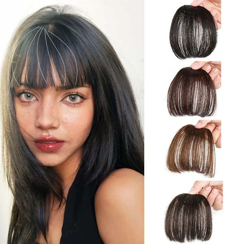 Emberek Frufru haja clip-in kiterjesztése Szintetikus Műhaj Cafrang Félkegyelmű Ál- Vendéghaj Nők csipesz óra Frufru haja hajformázó eszközök