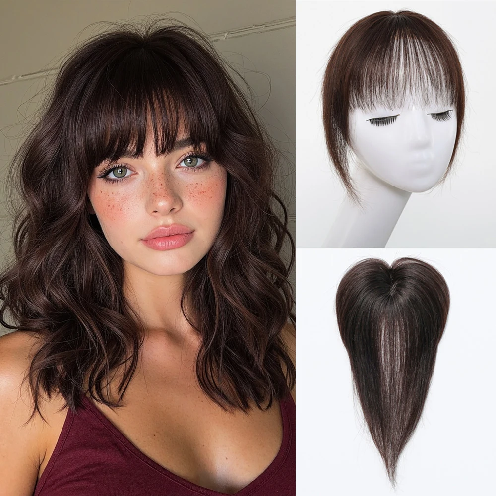 100% remy Emberek haja toppers Homályos Barna 3D Leheletszerű Frufru Hiánytalan Tudósítás számára Nők haja Ártás Félkegyelmű looking Cilinder hairpieces