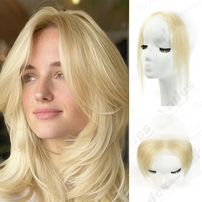 Csipesz óra Frufru 613 Szőke 100% Emberek haja Frufru vel 3 csúszásmentes klipek 360°cover felső hairpieces vel 5 hüvelykes Leheletszerű fringes számára Nők