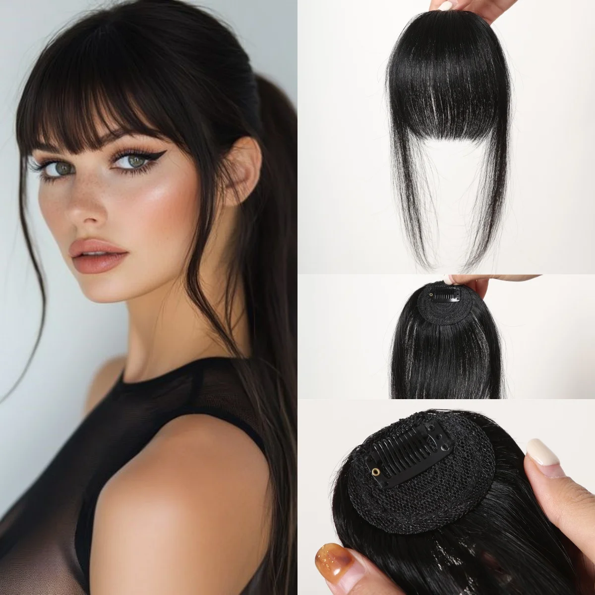 10 hüvelykes valós Emberek haja Cilinder vel Frufru számára Nők 3D Leheletszerű Ária Frufru 100% remy haja hairpieces számára haja Ártás Félkegyelmű looking