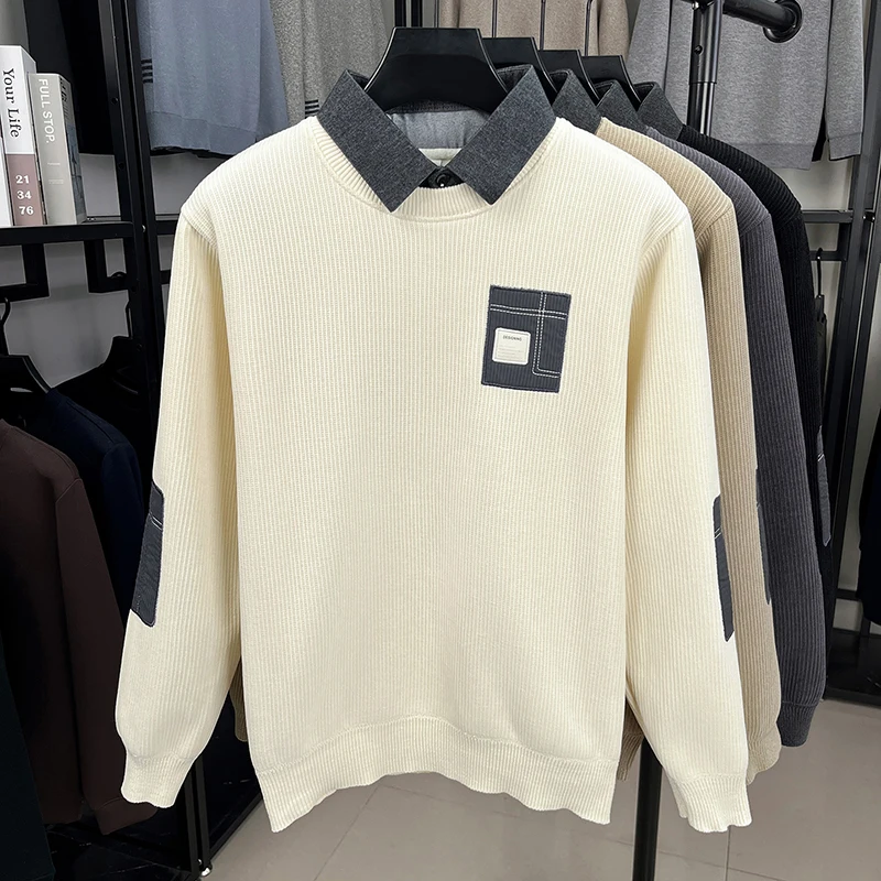 men's Ing Csőbilincs kötött Pulóver - ligh Kék (6 colors) faux two-layer Design Teendő Alkalmi style Tartam Erőt önt vkibe illeszkedő