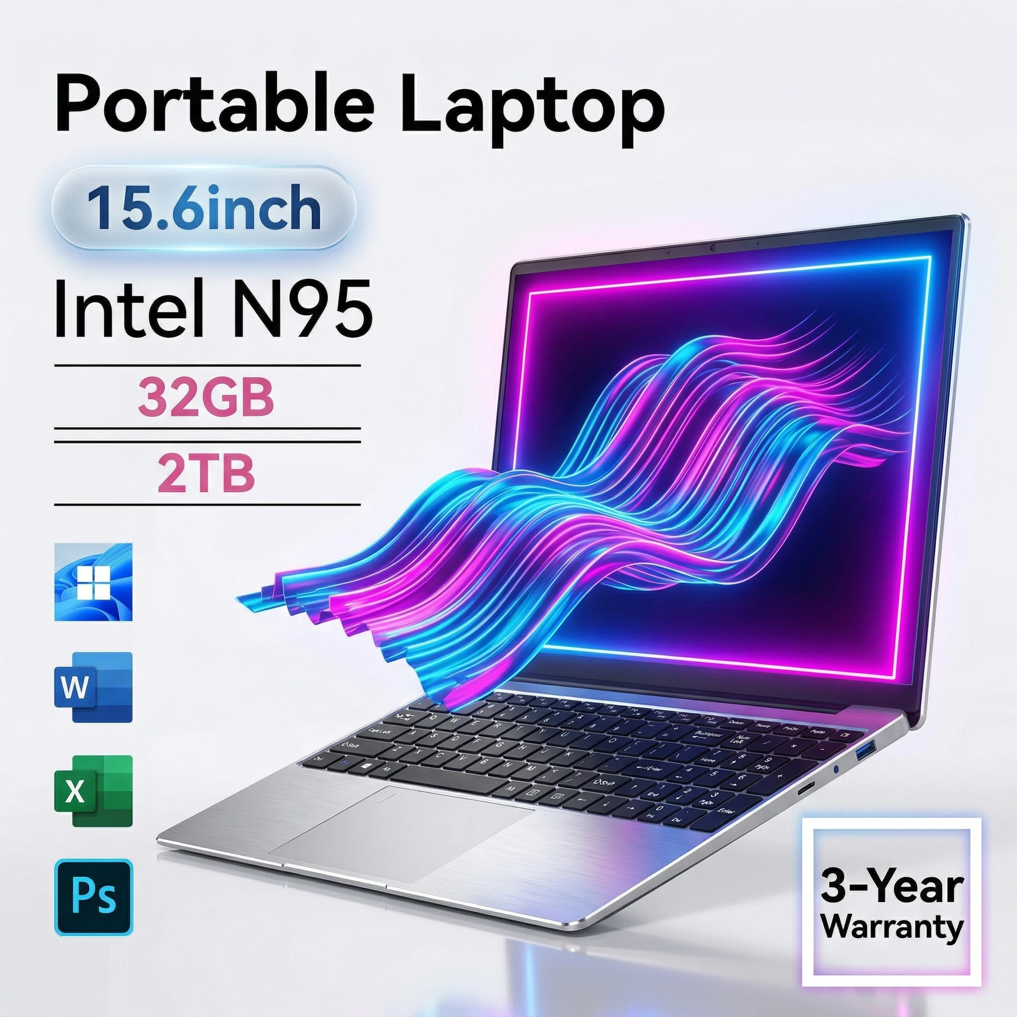 Intel N95 Hordozható Notebook 15.6inch 32GB 2TB windows11 Hivatal 1080P Merevlemez Daktiloszkópia Bont vmit laptops Játék Füzet Számítógép PC