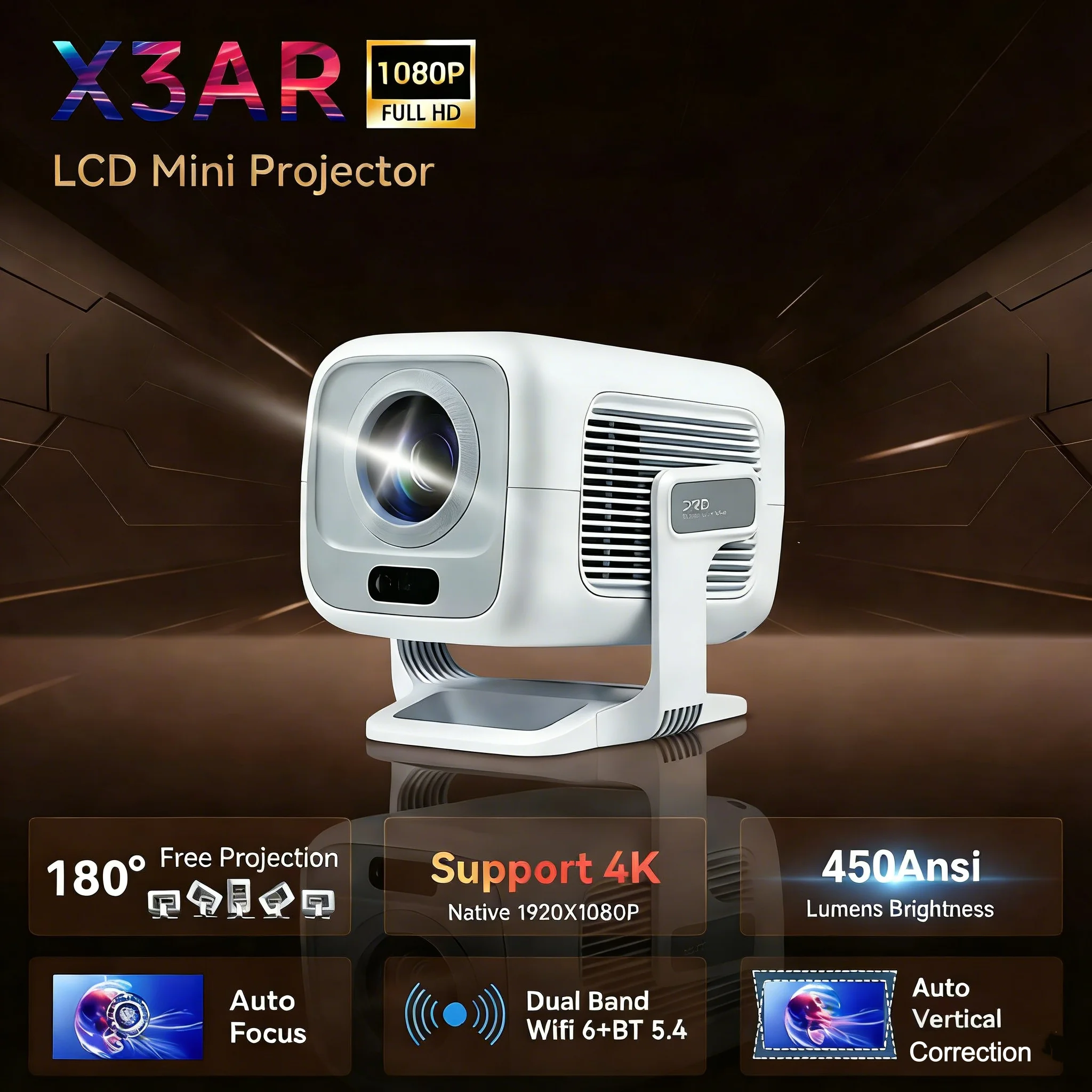 XGODY Vízszintes iránytűtok 3 -ért projektor 4K wifi6 android Mali beamer 300 ANSI Kettős szám WIFI BT5.4 1280*720P haza Színkör kültéri Hordozható