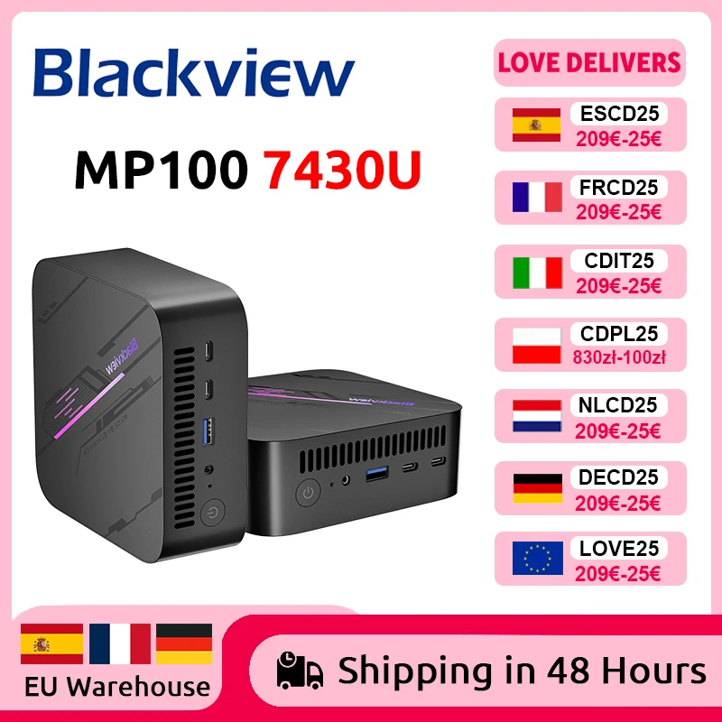 Blackview MP100 Új Mali PC AMD 7430U Üvegezés 11 6-core 12-thread 16gb + 512GB / 32GB + 1TB wifi 6 Mali Számítógép PC BT5.2