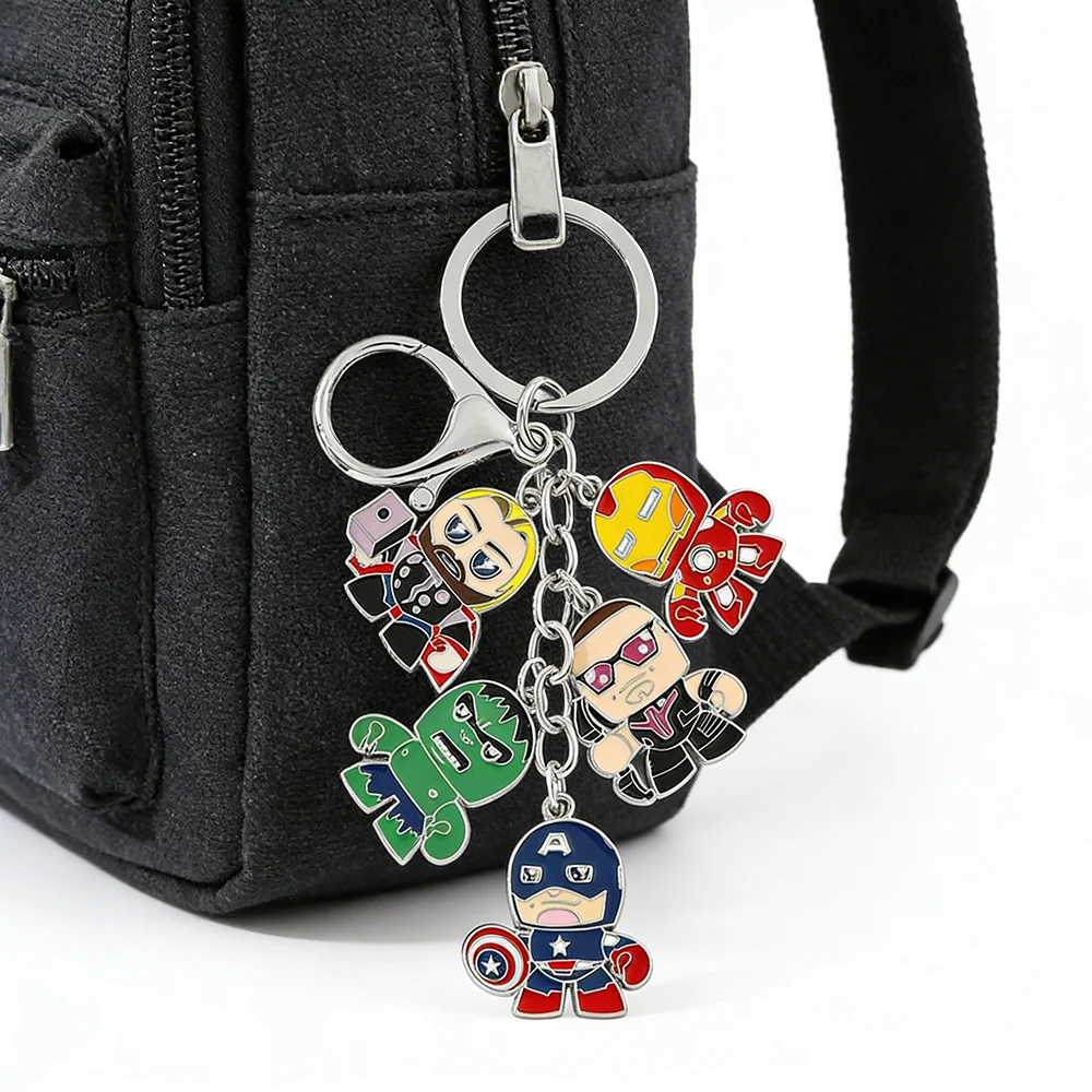 Szuperhős bosszúállók Mozidarab keychain Gyűrűtest Élesen hangsúlyoz Fém keychain férfiak Nők autó Kulcskarika Legyező Adomány gyerekeknek kulcs Cirkusz porondja