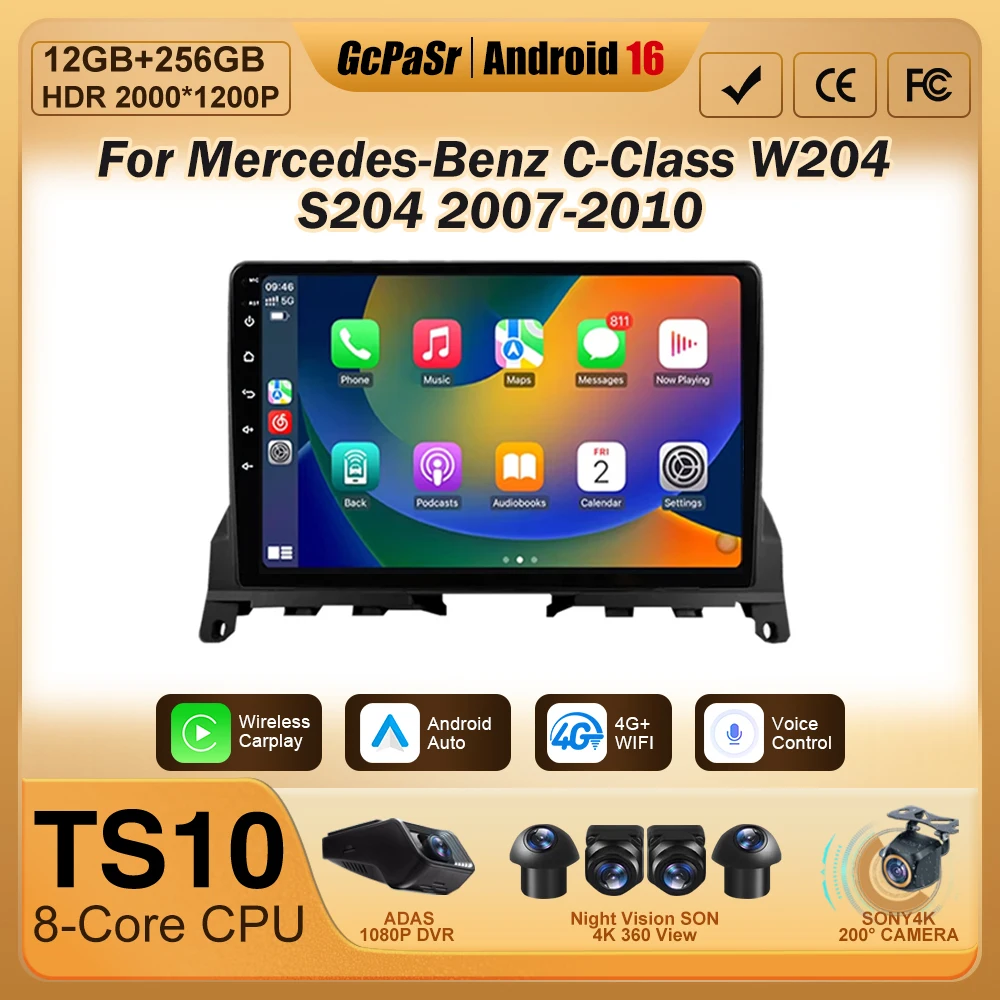 Autó Átvilágítás számára Mercedes-Benz c-class W204 S204 2007-2010 android automat Játékos wireles carplay 8core autoradio Multimédia hifi