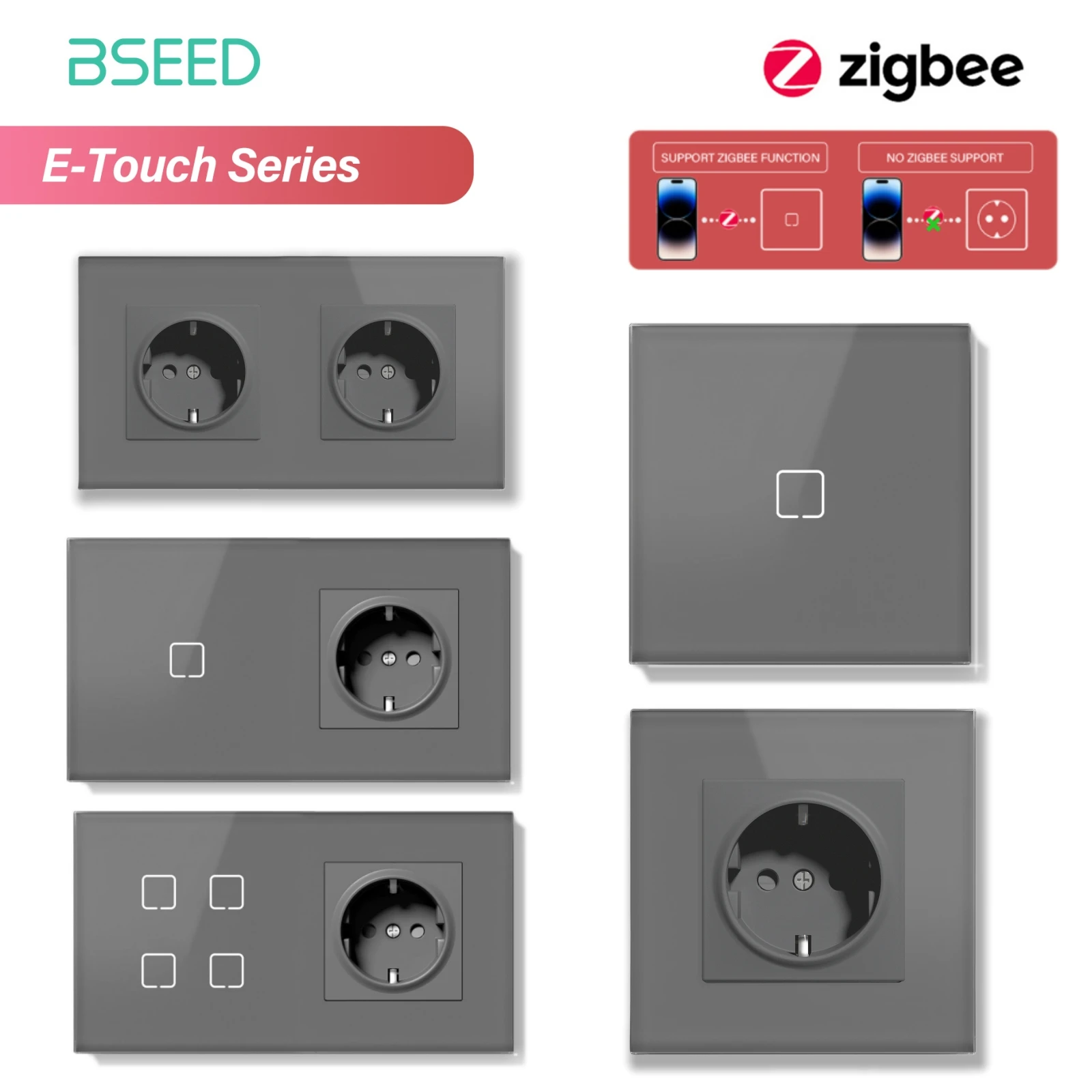 BSEED 1/2/3/4gang zigbee érintse Árammegszakító üvegek vel Európai Unió sockets smare fali ligh Árammegszakító érintse Kivet backlight E Széria