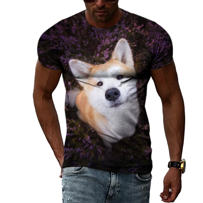 Csináltatás Érdekes shiba inu Grafikus T shirts Födémgerenda 3D Alkalmi Állat mintás Bennyomás Póló felső Csípő Fél lábon ugrál trendyol men's Áruraktár