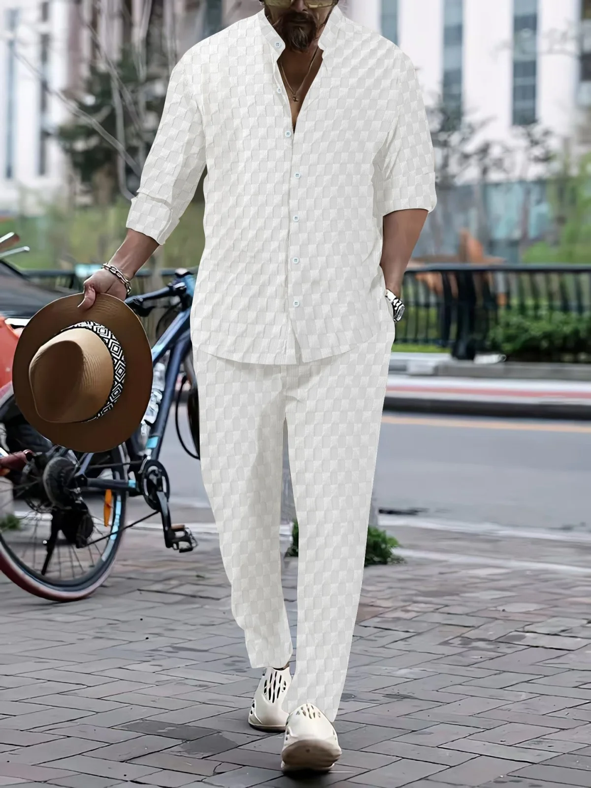Új Árad vmiből Ingázó Árverseny Ablakszövet Bamba solid-color half-sleeved Ing + Nadrág men's Teendő Alkalmi beállítása