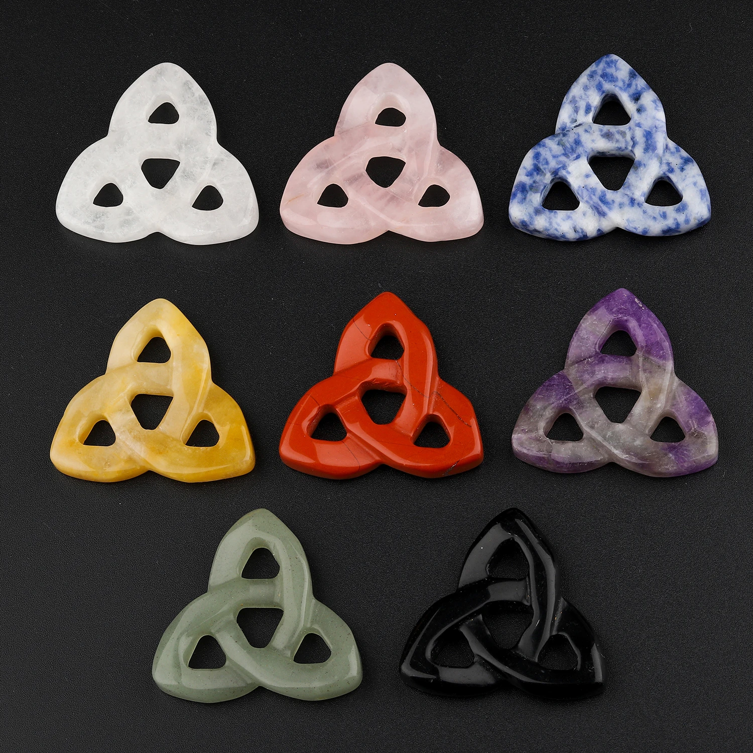 Félkegyelmű Kő Ír nyelv Kelták csomót Háromszög ruyi virágos Gyógyítás Csiszolt üveg cavring csakra Kvarc DIY Medál Cifraság haza decoratie