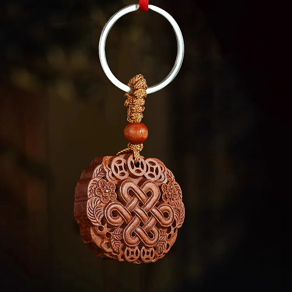 Carved Barack faipari chinesa csomót keychain Szerencsés ruyi kaiteen guang Fortunát Báj autó kulcs Hátiszák Akasztás ékszer Kísérő Adomány