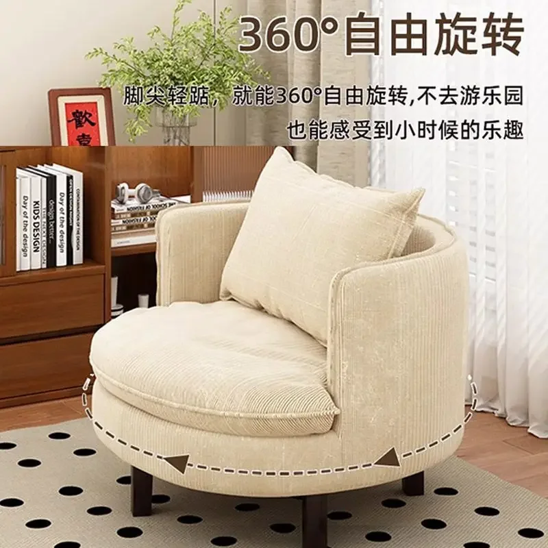 Divano singolo Sedia Soggiorno Balcone Tempo libero Rotondo Girevole Piccolo appartamento Divano in tessuto Sedia pigra Schienale