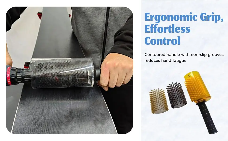 Set di Spazzole per Sci, Spazzola Elettrica Rotante con Manico, Spazzola in Nylon, Ottone e Crine di Cavallo, Kit Spazzole per Cera da Snowboard