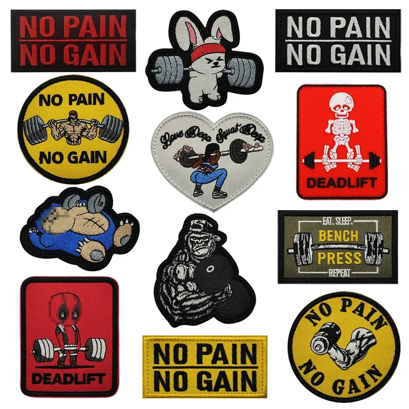 NO PAIN NO GAIN PALESTRA fitness Toppa luminosa ricamata in PVC Morale all'aperto fascia da braccio Hook Loop Zaino Distintivo tattico Applique