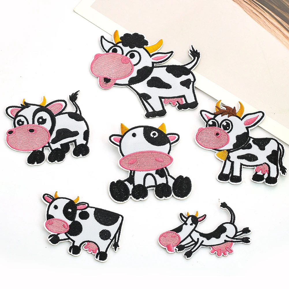 Set di toppe ricamate autoadesive per contadino di mucca, tessuto fai da te per abbigliamento per bambini, zaino, cappello, decorazione, regalo di applique per cartoni animati divertenti