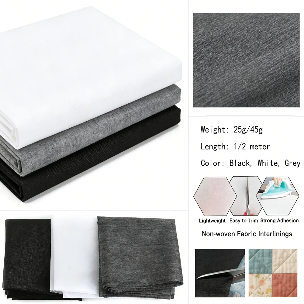 Interfodera Termoadesiva Non Tessuta 1/2M, Bianca Nera Grigia, Adesiva per Cucito, Tessuto Artigianale Monofacciale per Patchwork